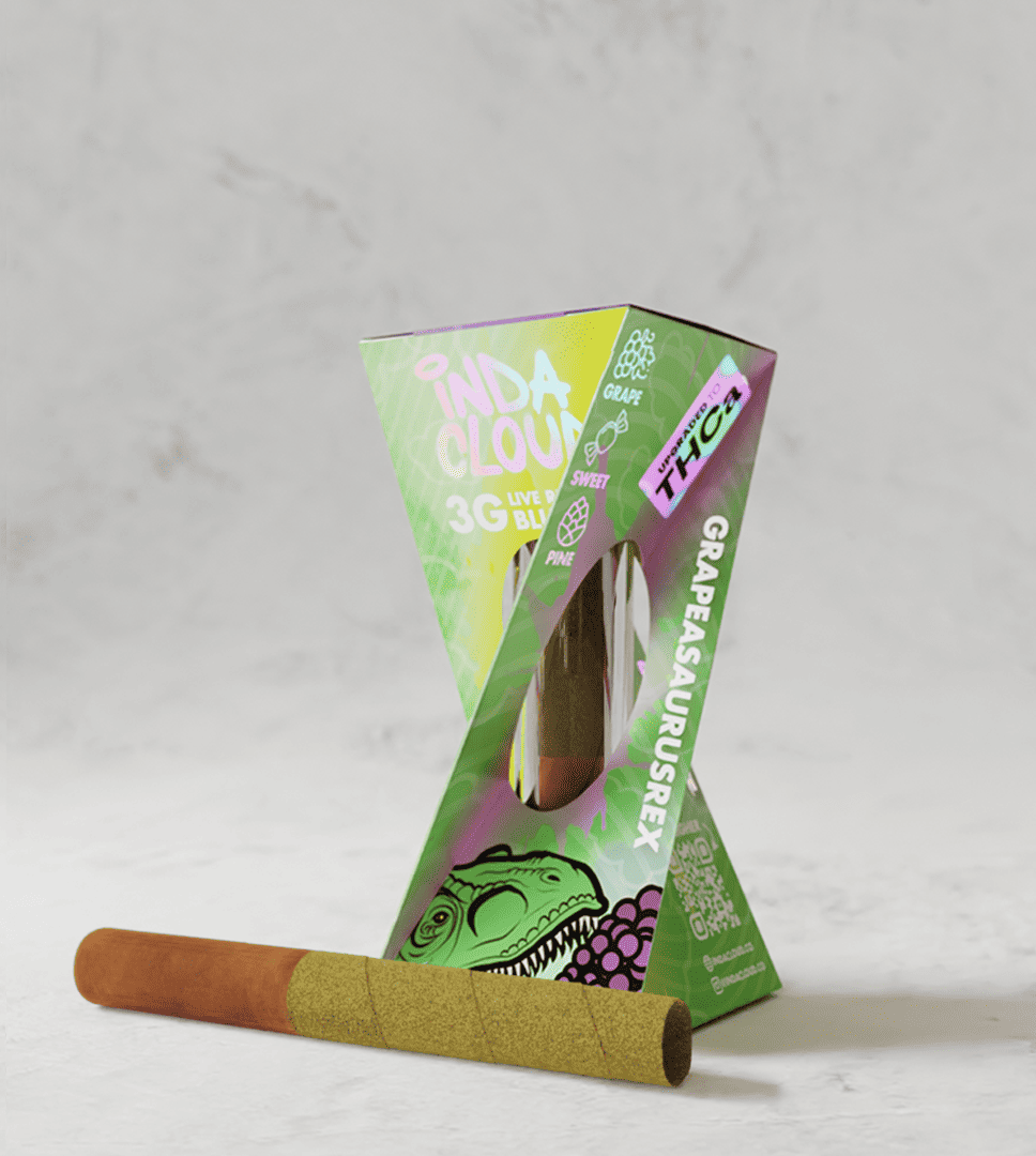The Grapeasauras Rex Delta 9-O THC Super Blunt from Indacloud is a sensory delight designed to awaken your taste buds. Its dominant flavor is a rich, sweet grape reminiscent of a vineyard in full bloom. This fruity sweetness is complemented by subtle piney undertones, adding a refreshing twist to the overall flavor profile. Combining these flavors results in a unique and enjoyable smoking experience that is both satisfying and memorable. The Grapeasauras Rex Super Blunt is not just about the THC content; it's about the whole sensory experience, and the flavor plays a significant role.