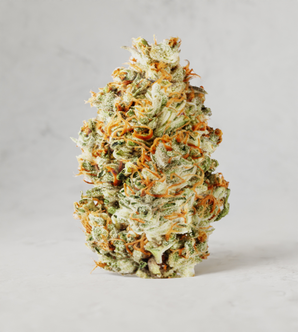 An indica dominant hybrid strain that is fast acting and leaves experienced users feeling relaxed and rejuvenated. Produced by crossing Jet Fuel Gelato and Legend Orange Apricot, this strain has pops of fruit and fuel throughout its entire smoke.