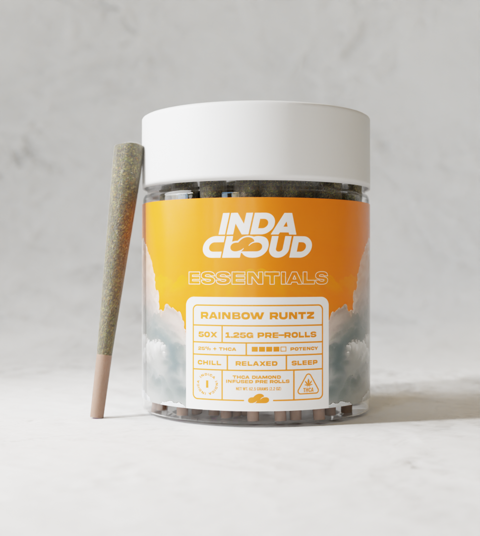 Looking for the pot of gold at the end of your high? Rainbow Runtz delivers! This indica strain packs a colorful punch with its vibrant mix of sweet, fruity flavors reminiscent of tropical candy. Each Diamond-Infused 1.25g pre-roll in this 50-count jar is crafted to melt stress away, leaving you in a state of deep relaxation. Perfect for winding down after a long day or finding your own slice of bliss, Rainbow Runtz is where flavor meets ultimate tranquility.